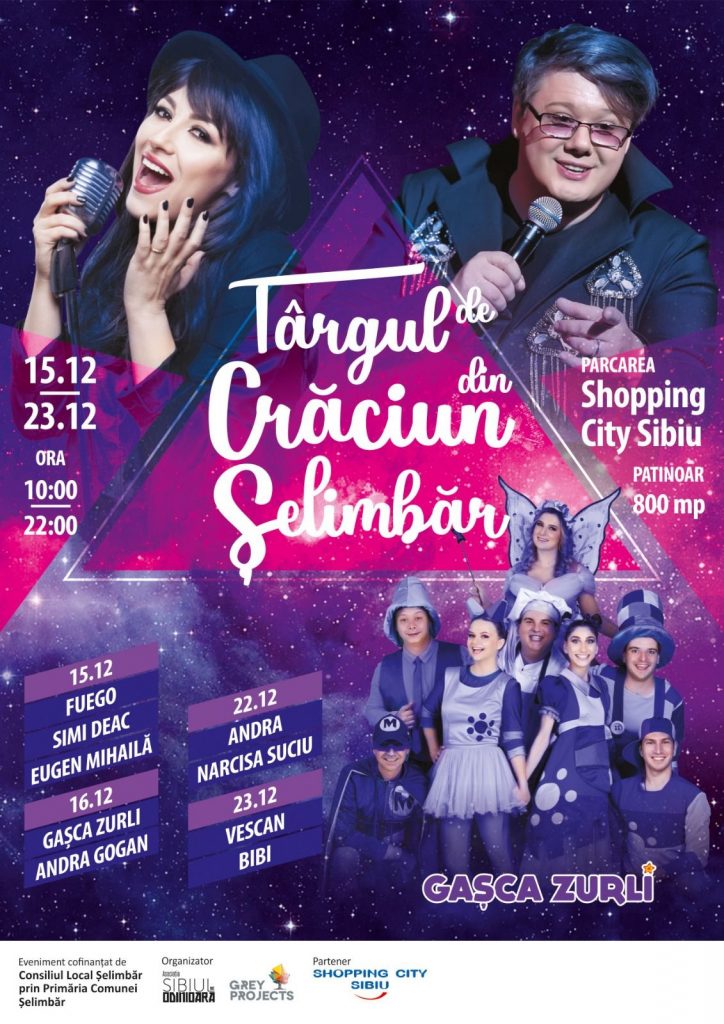 * Andra, Fuego, Gașca Zurli, Vescan, Bibi, Andra Gogan și nu numai, concertează în cadrul evenimentului ce are loc între 15 și 23 decembrie în parcarea de la Shopping City Sibiu.